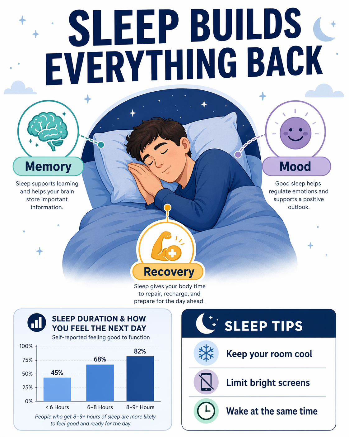 The poster must contain these exact text elements with clean hierarchy and perfect spelling: