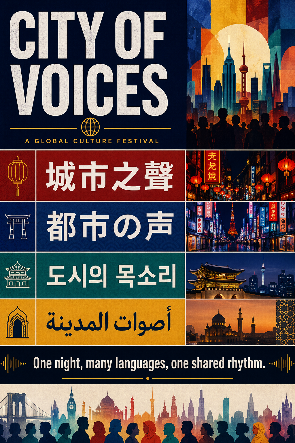 Create a global culture festival poster with a bold contemporary editorial layout.