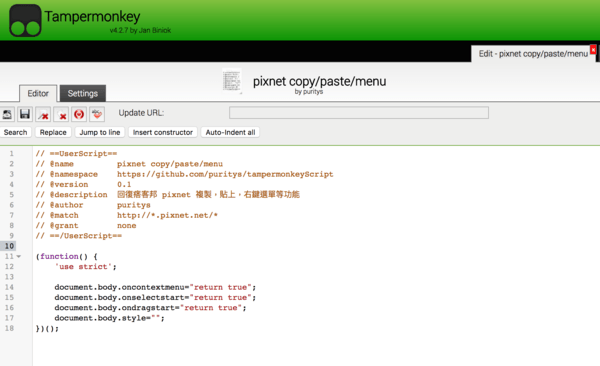 每次打開痞客邦頁面就要做一次這個動作也很麻煩,而且過兩天就忘記程式碼內容了,還要重新上網找一次,平常我都會安裝 tampermonkey 這個外掛 ,這個外掛可以自動執行指定的程式碼,把下面這個 github 的程式碼貼上 tampermonkey userscript 就可以了,以後程式會自動幫你破解,你就不用再手動做了, Firefox 也有類似的外掛可以使用。
