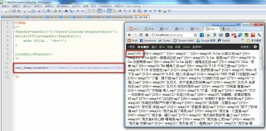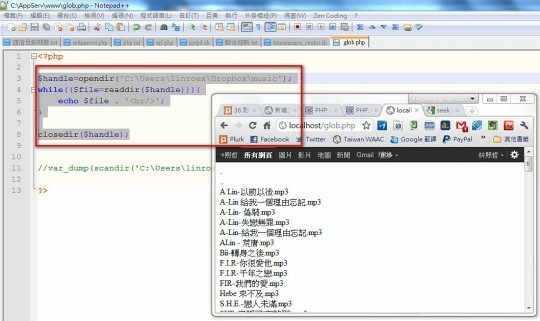 有時候會需要寫PHP程式去取得指定資料夾內的檔案列表,例如在做網路硬碟程式時舊需要這種功能,這裡要跟大家介紹三個函式都可以做到這種功能,只是使用上不太一樣,這三個函式分別是glob、scandir、readdir