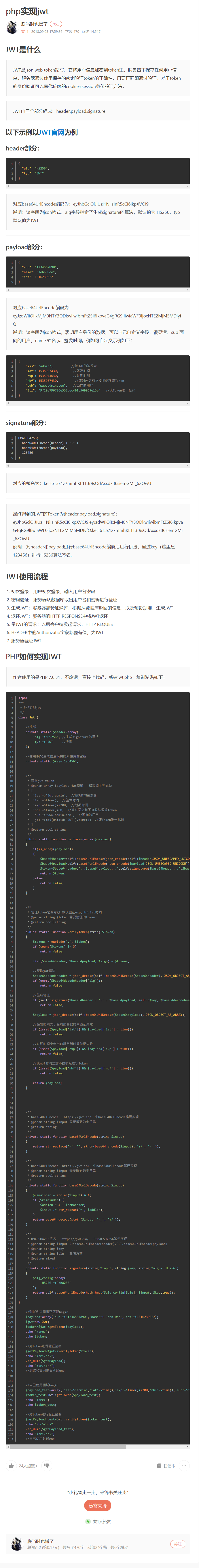 作者使用的是PHP 7.0.31,不廢話,直接上代碼,新建jwt.php,複製粘貼如下: