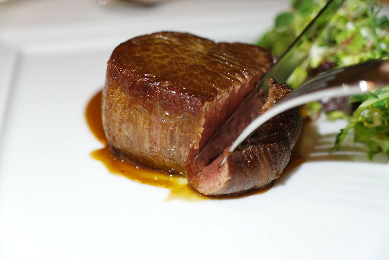 ▲輕輕切下五分熟的菲力牛排,能看見其誘人的粉紅色切面