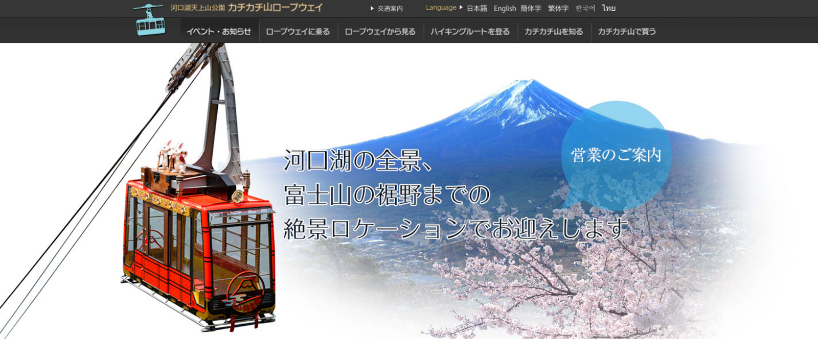 | 乘坐纜車上天上山公園後,可同時眺望到富士山及河口湖 圖源:http://www.kachikachiyama-ropeway.com/contents/guide/ |