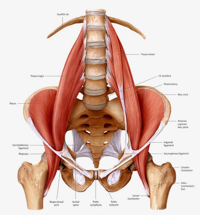 『髂腰肌』就是你的身體的『西螺大橋』,連接你身體的上半身與下半身;而同時這條肌肉解剖的走向又是從後面胸椎第十二節、腰椎第一、二、三、四、五橫突,往前往下走到大腿骨關節。所以,『髂腰肌』又是連接身體前、後最重要的一條肌肉。『髂腰肌』會左右你的脊椎及骨盆及大腿的彎曲度。當『髂腰肌』縮短太緊時,會帶動骨盆向前傾,增加脊椎前凸的幅度,此會將上半身重量完全集中置於腰椎上,那會造成腰椎椎間盤凸出或是關節過度磨損及長骨刺、脊椎滑脫等多項問題。常見門診有些朋友練瑜珈後彎,因為,『髂腰肌』縮短太緊,實在是沒有辦法做的很好,又想好好保護脊椎的活動度,此時,就應該先多多伸展『髂腰肌』。