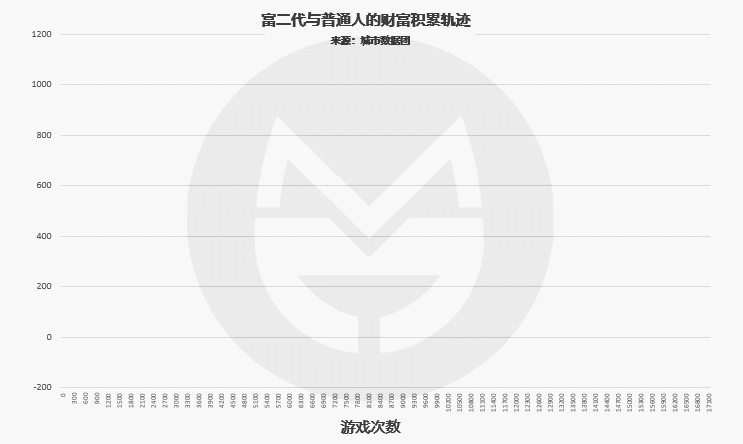 可以看到,富二代玩家中雖然也有“敗家子”,但他們仍有很大概率將財富值維持在較高水平。富二代們和普通人生活在兩個世界中,偶有交集而已。