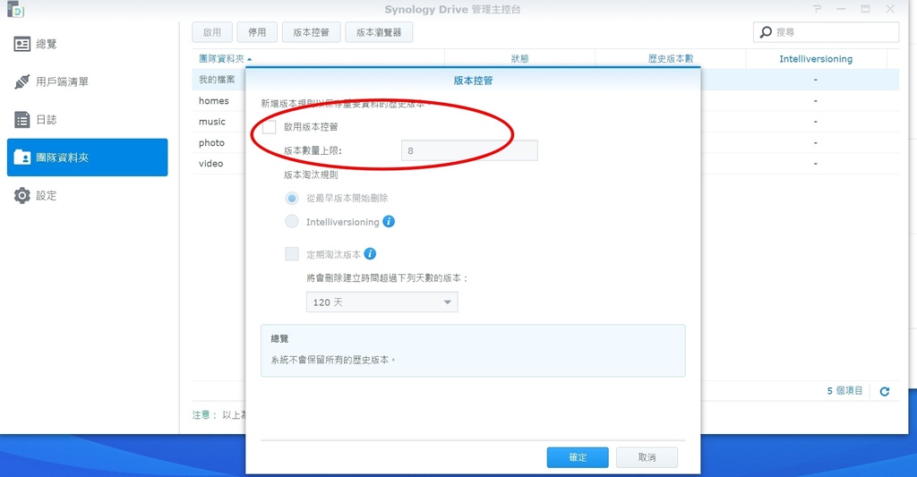 synology drive版本數量會狂吃儲存空間,要找設定找了老半天,最後發現在"synology drive管理主控台"中間設定