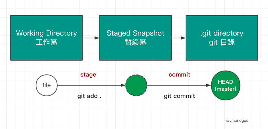 Git 簡單來説分為三個區域: