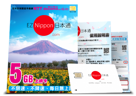 而且這類的方案,多數以日本當地購買為主,如果你想要先在台灣就處理完這件事情的話,可以推薦使用EZ Nippon 日本通 5GB